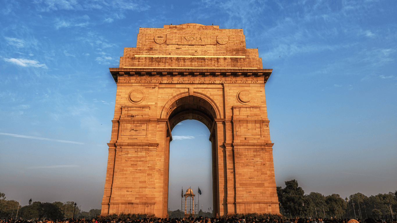 Pause at the majestic India Gate, a war memorial honoring India's brave soldiers.